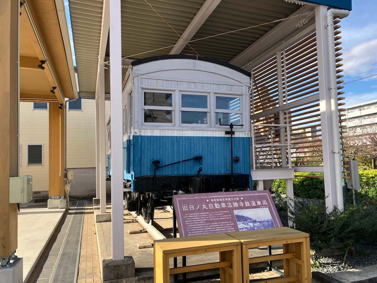 市民の憩いの場「元町パティオ」には、かつて米子市と南部町(旧会見町・旧西伯町)を結ぶ地域の交通機関として活躍した「法勝寺電車」が展示されており、街の歴史に触れられるのも魅力のひとつです。
